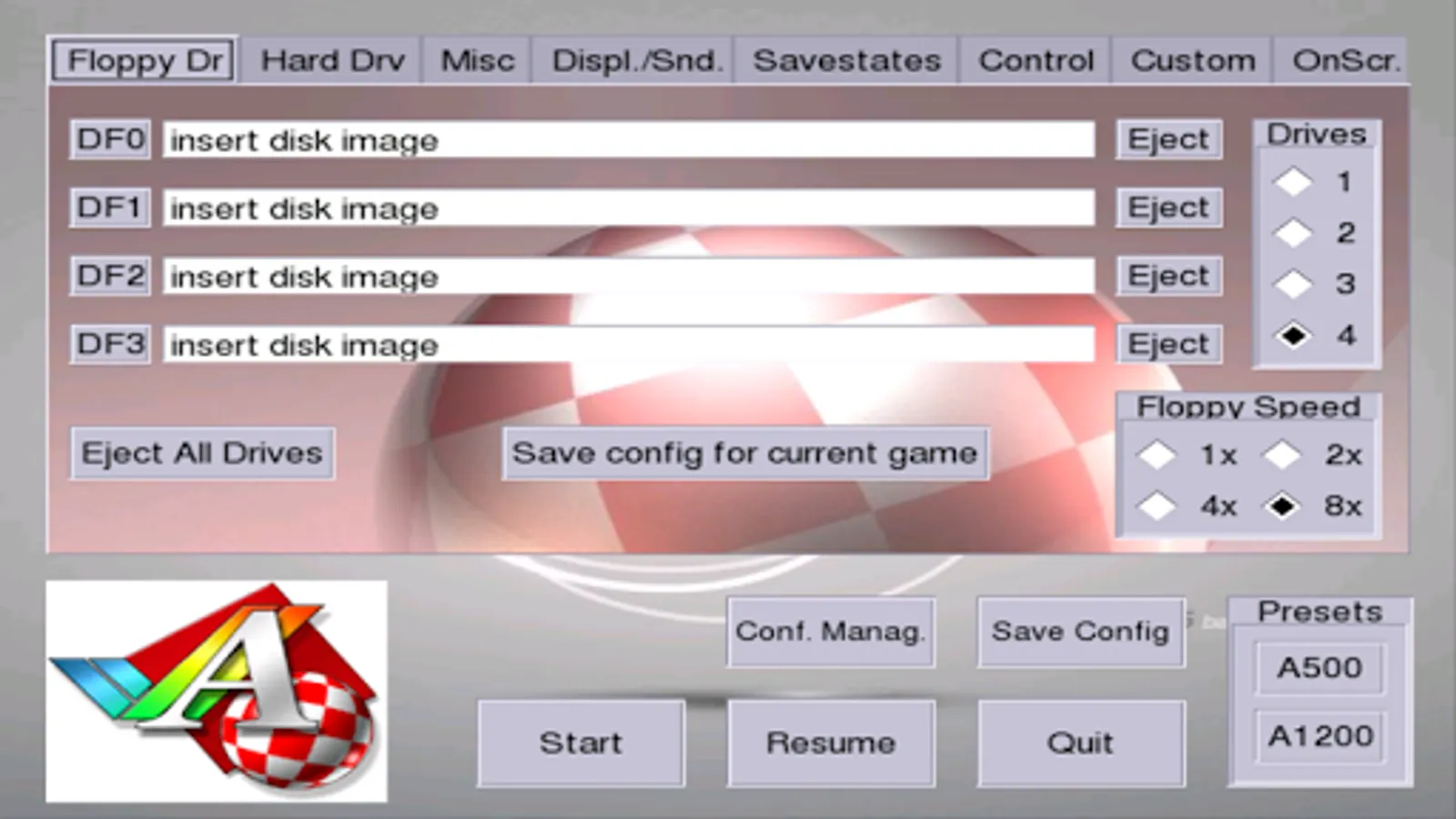 Features: AGA/OCS/ECS, 68020 and 68000 emulation, harddisk-support, WHDLoad-support, Chip/Slow/Fast-mem settings, savestates, vsync, most games run fullspeed.