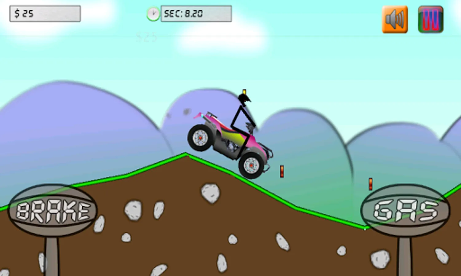 Stickman ATV Extreme is a racing-style game where you need to outperform anyone on the leaderboards. Try to gain the best time on the leaderboards. Race through the levels, earn money by colliding with the coins and reach the finish line on each level to keep the money you've earned. Gold coins bring you $50, silver gives you $25, and bronze - $15.
