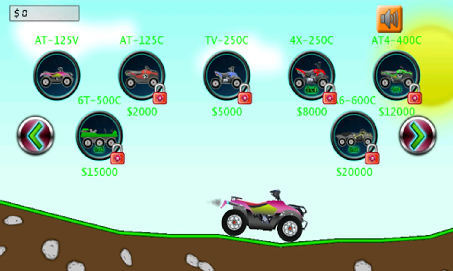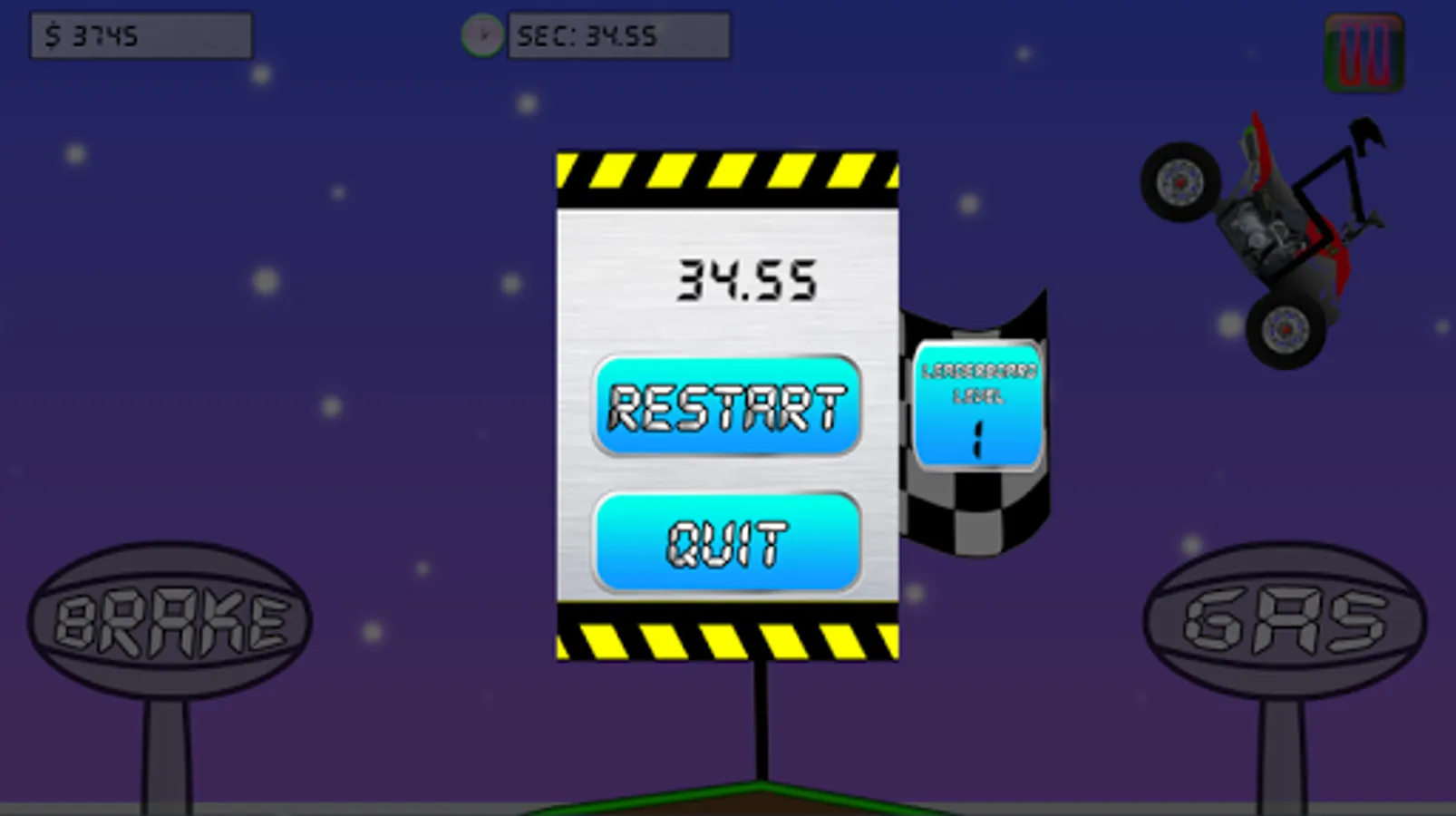 Then, when you have enough, you can buy and unlock new quads or new levels, where each level has its own leaderboard. Try to get the best time possible, so that you may climb up in the level's leaderboard.