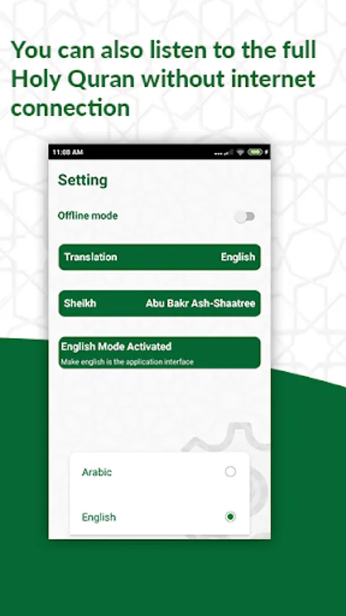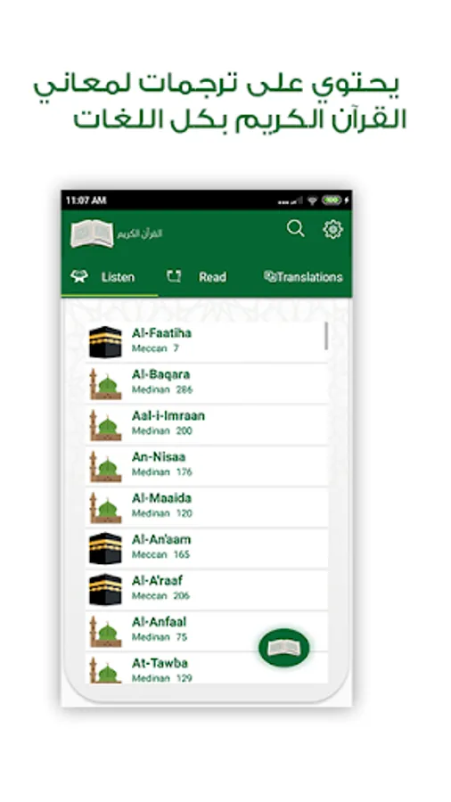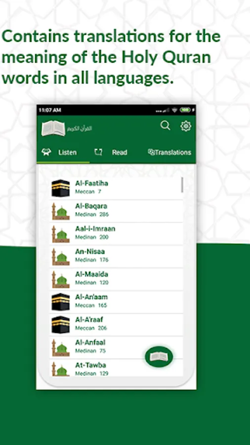 It contains translations for the meaning of the Holy Quran words in all languages. You can also listen to the full Holy Quran without internet connection, for a wide group of readers.