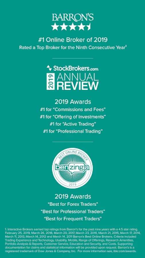 All brokers are not created equal. The IBKR Mobile trading application from Interactive Brokers provides electronic access to stocks, options, futures, forex and futures options on multiple market destinations worldwide. Get real-time streaming data and charts; transmit orders instantaneously or use the order ticket; monitor your trades and enjoy immediate access to your account balances and portfolio data wherever you go. And don't worry about the cost. Our SmartRoutingâ„ technology searches for the best price available at the time of your order and dynamically routes and re-routes all or parts of your order to achieve optimal execution. And for the fifth consecutive year, Interactive Brokers was ranked Lowest Cost Broker by Barron's magazine.