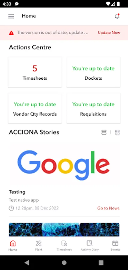 A mobile app for the construction industry that connects the entire project team on Acciona and joint venture sites. Ensuring employees, consultants and subcontractors (non-employees), are able to: