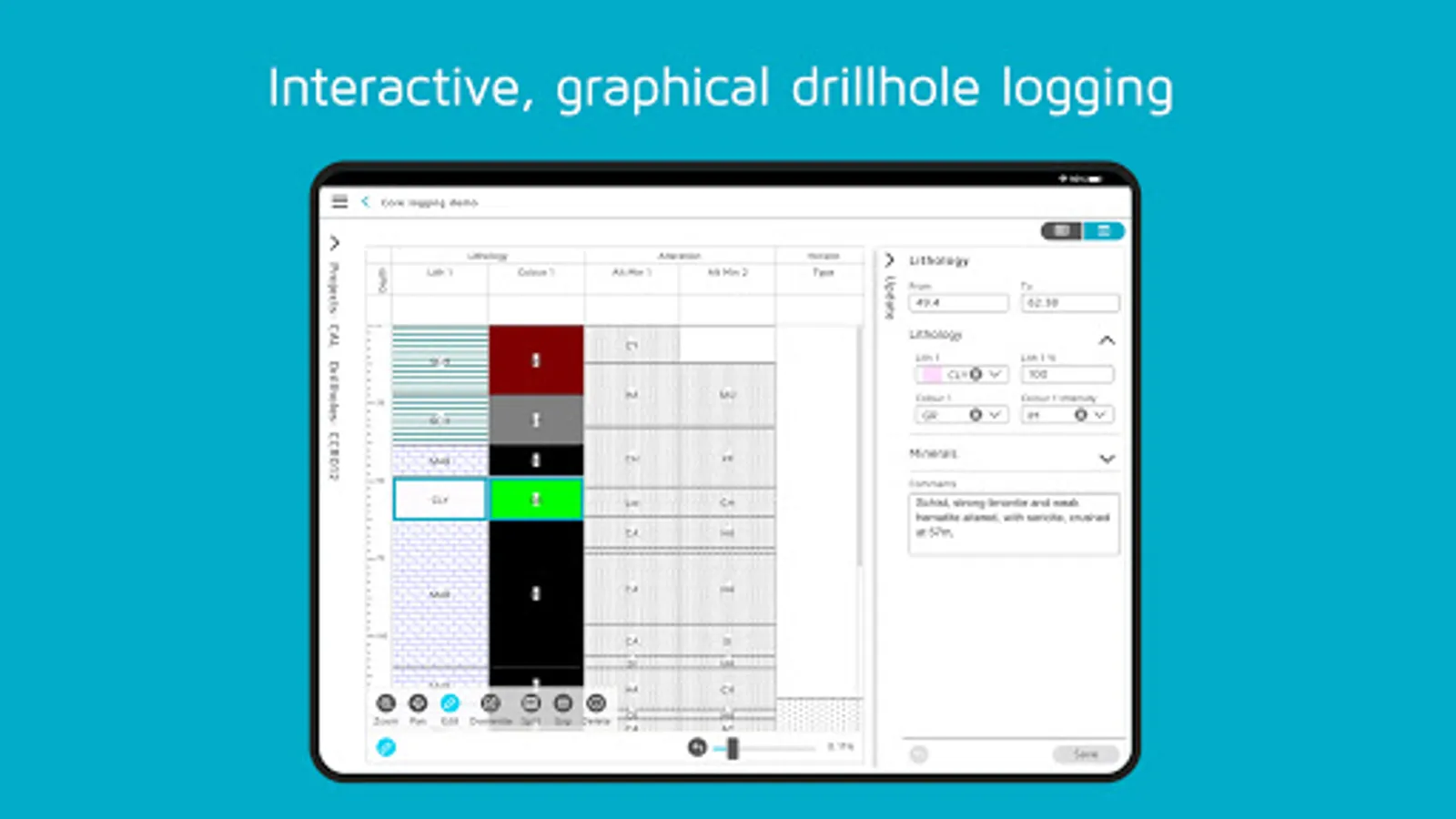 Receive real-time visual feedback when logging geological observations and sample intervals directly into a graphical logging interface. Improve the quality of your logging by visually inspecting and dynamically adjusting intervals using your touch-friendly device.