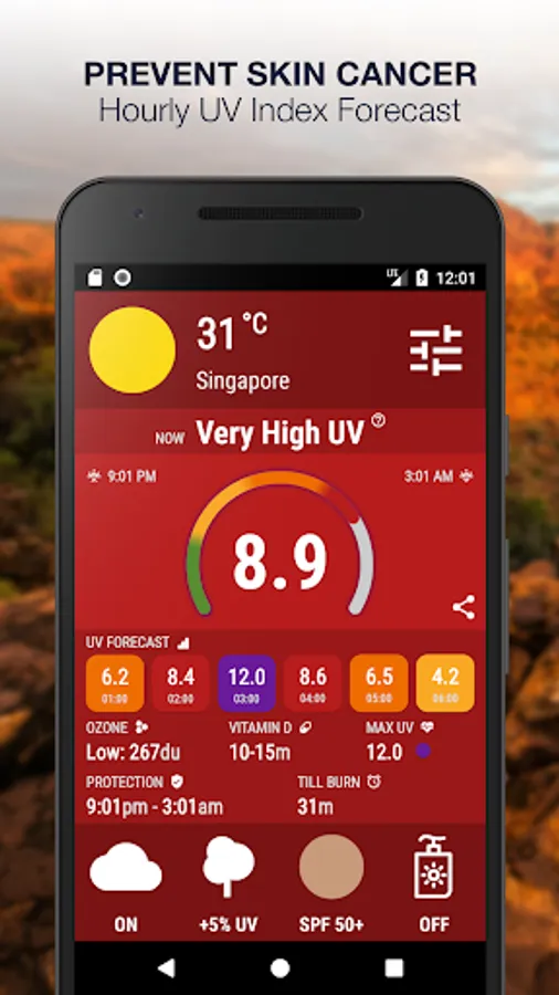 Track the UV Index around the globe, stay sunburn free and have a safe time outdoors with an accurate 6 hour UV forecast and UV alarms. Reduce your risk of melanoma and stay protected in the sun!