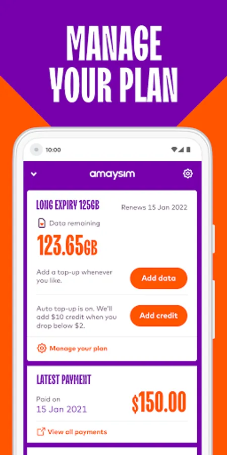 We also love keeping things simple and have made managing your amaysim mobile plan incredibly easy through our app, so you can: