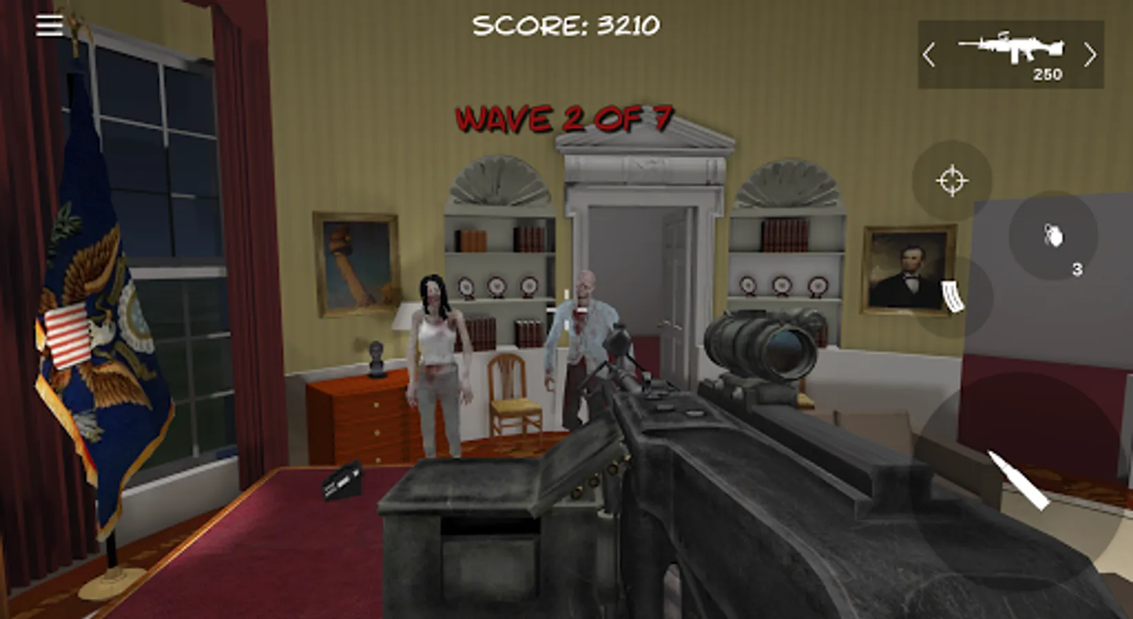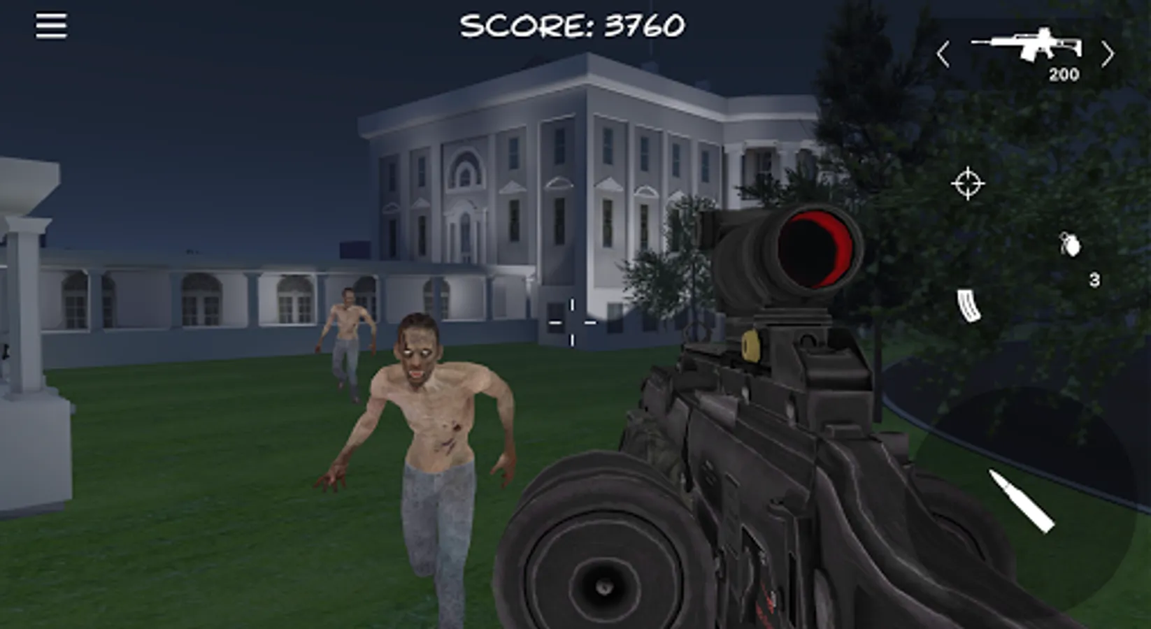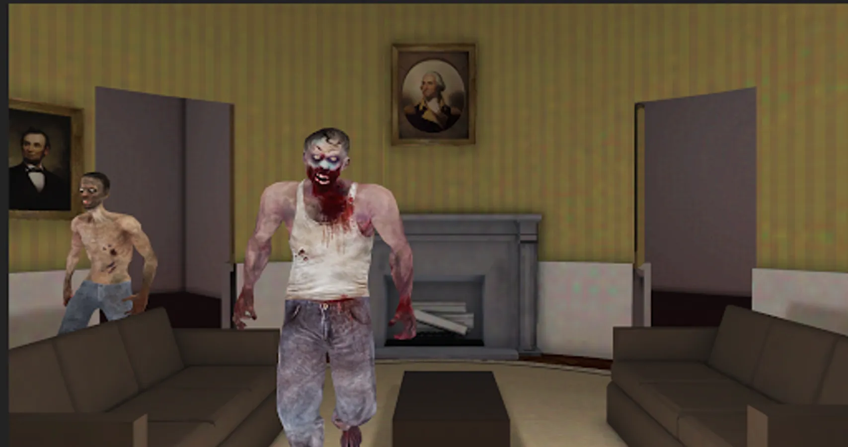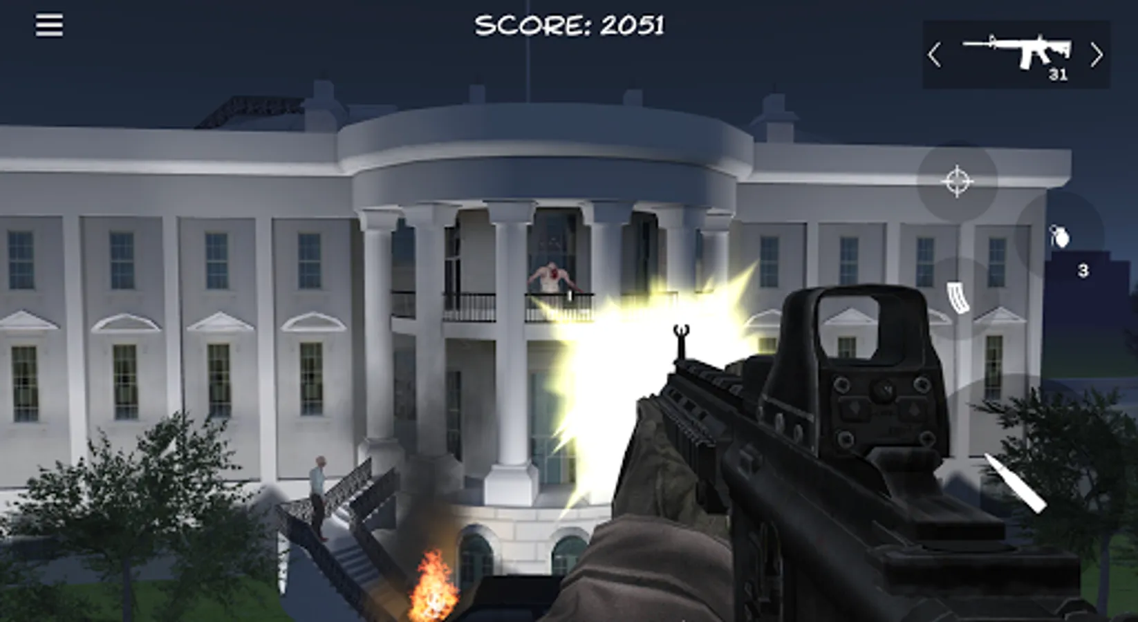 Zombie Attack Whitehouse is a first-person shooter (FPS). Your mission is to protect the President at all costs using a collection of weapons and explosives.
