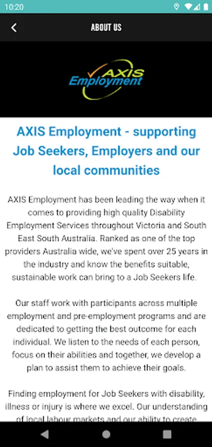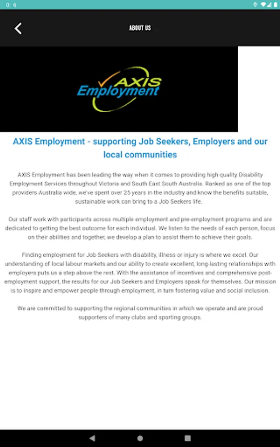 AXIS Employment is a not for profit, community-based organisation the provides employment and pre-employment solutions to Participants and Employers in regional Victoria and South Australia.