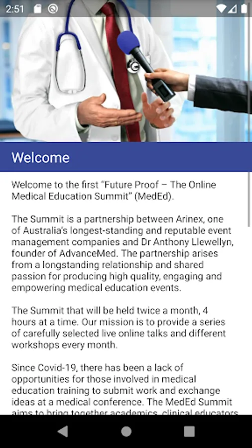 The Future Proof - The Online Medical Education Summit aims to bring together general practitioners, trainees, registrars, medical students, junior doctors, and medical educators from Australia and Asia-Pacific. The Summit will provide a platform to share the latest research findings and discuss important current issues in the medical education space. A key focus of this summit will be to encourage a collaborative approach and act as a buzzing medical hub where delegates come to share ideas for the advancement of the field.