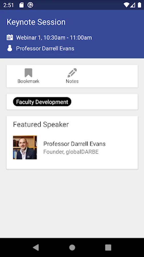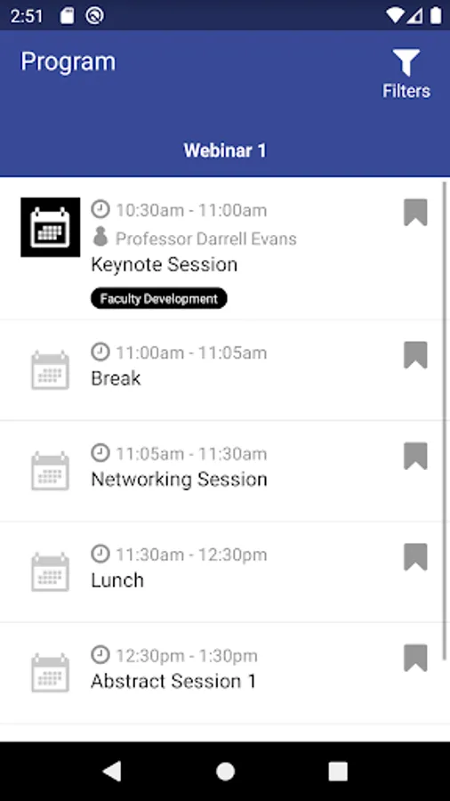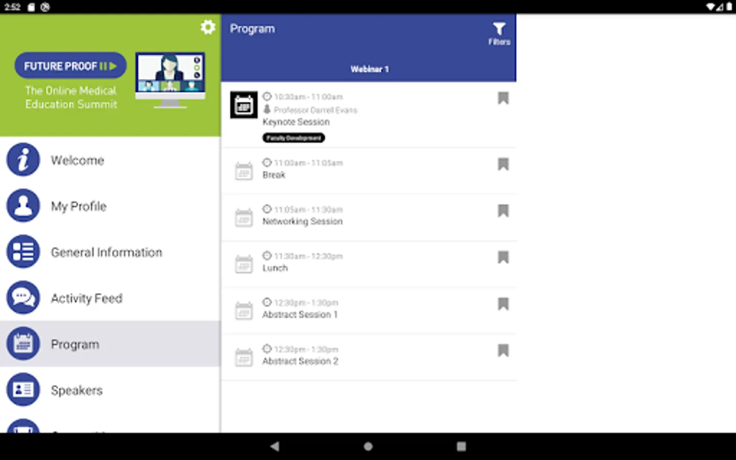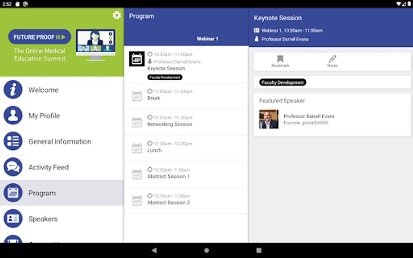 * Program Agenda - view the full agenda and related information (session times, room names, speaker info, and more).