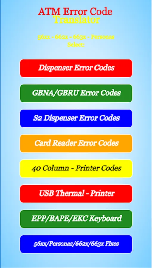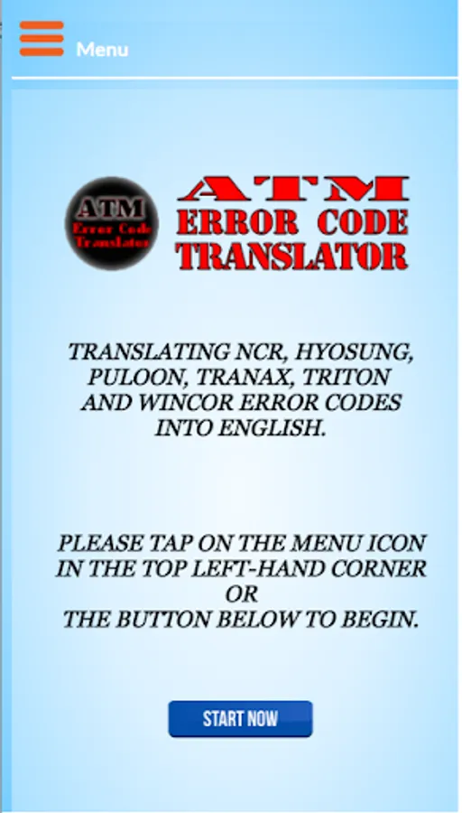 NCR, Hyosung, Pullon, Tranax, Triton and Wincor Error Codes Translated into English.