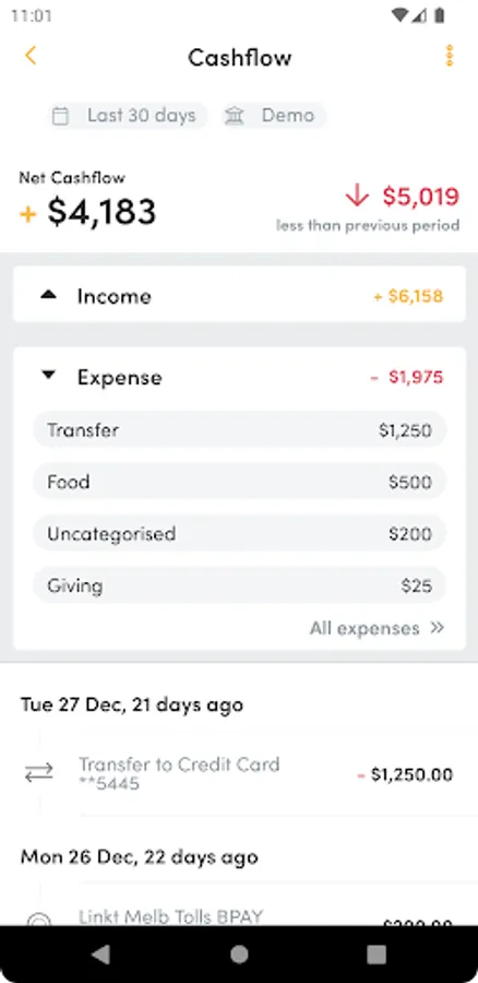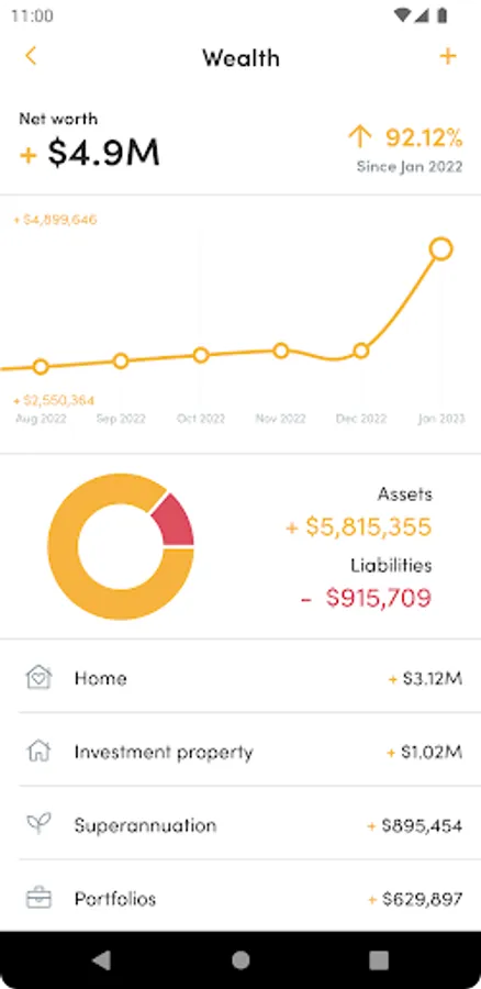 Live data feeds from bank accounts, super, investments, loans Document storage