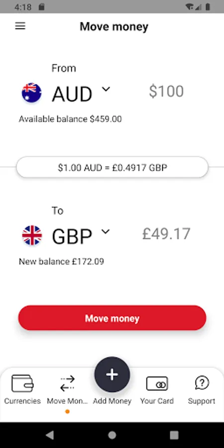 - Instantly transfer between currencies
