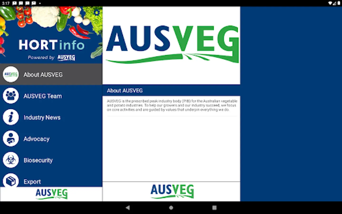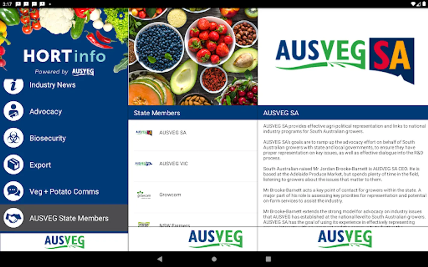 • Information on AUSVEG, AUSVEG team members, and state members