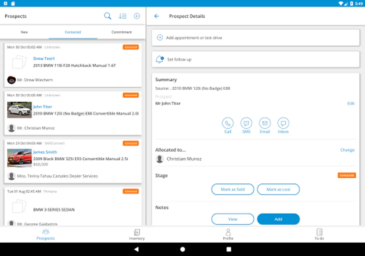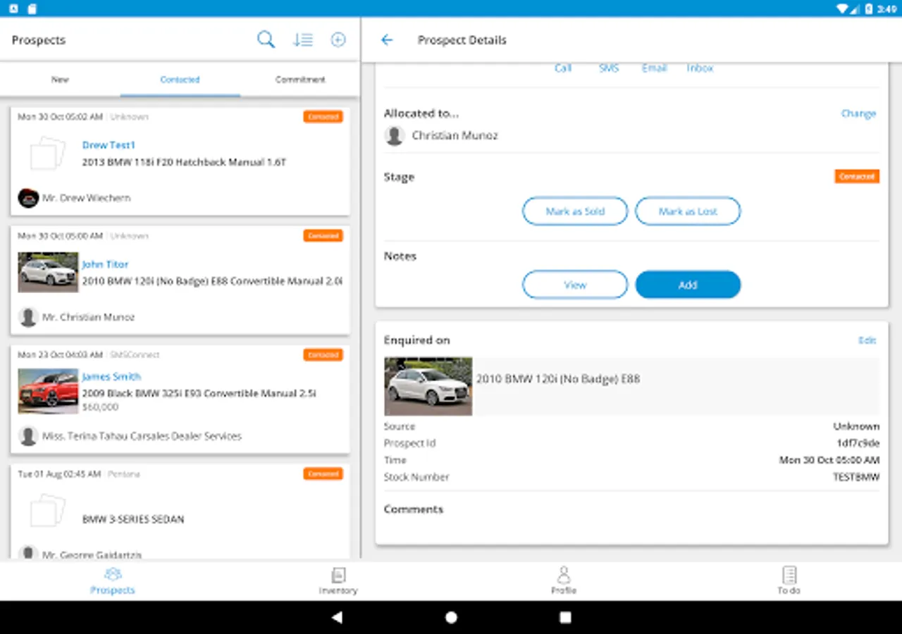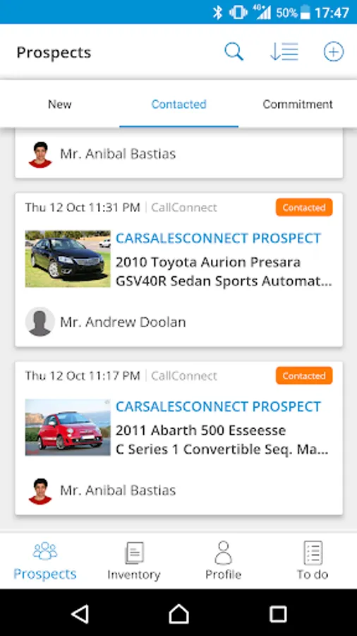 AutoGate prospects are automatically categorised in New, Contacted and Commitment, enabling you to understand where the prospect is on their purchase journey.