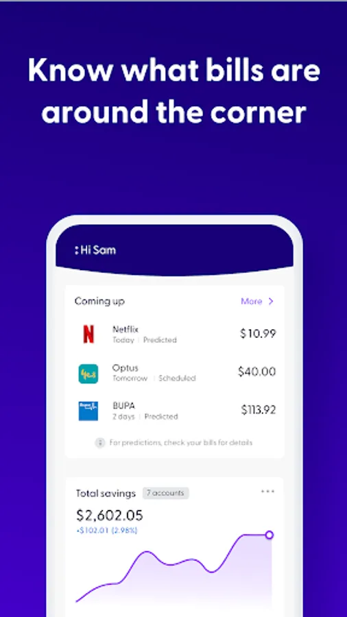 - Feel confident in knowing when your streaming payment is coming out including Spotify, Stan, Netflix, Kayo, Binge or Amazon Prime.