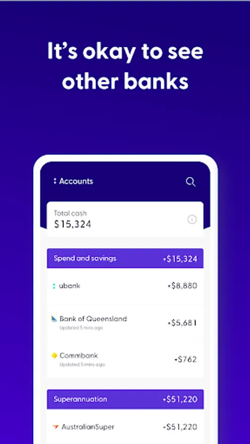 - See all your money in one place by connecting your credit cards (Visa, Mastercard, American Express), BNPL (Zip), super (AustralianSuper), investments (CommSec, NAB Trade, Spaceship Voyager) & home loans