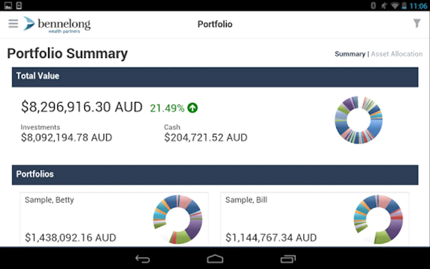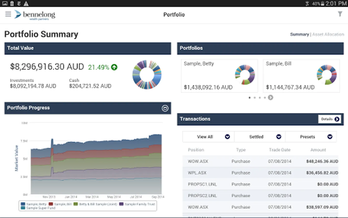 The Bennelong Wealth Partners app provides clients with interactive access to their portfolio, valuations, transaction history, performance and reporting.
