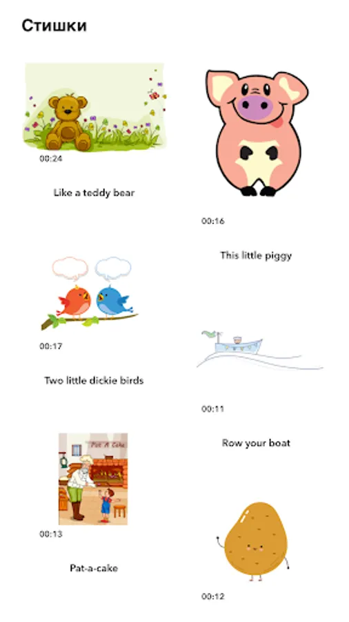- Read the rhymes collected in the app. The rhythm will help the kid remember new sound combinations for repeating.