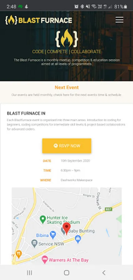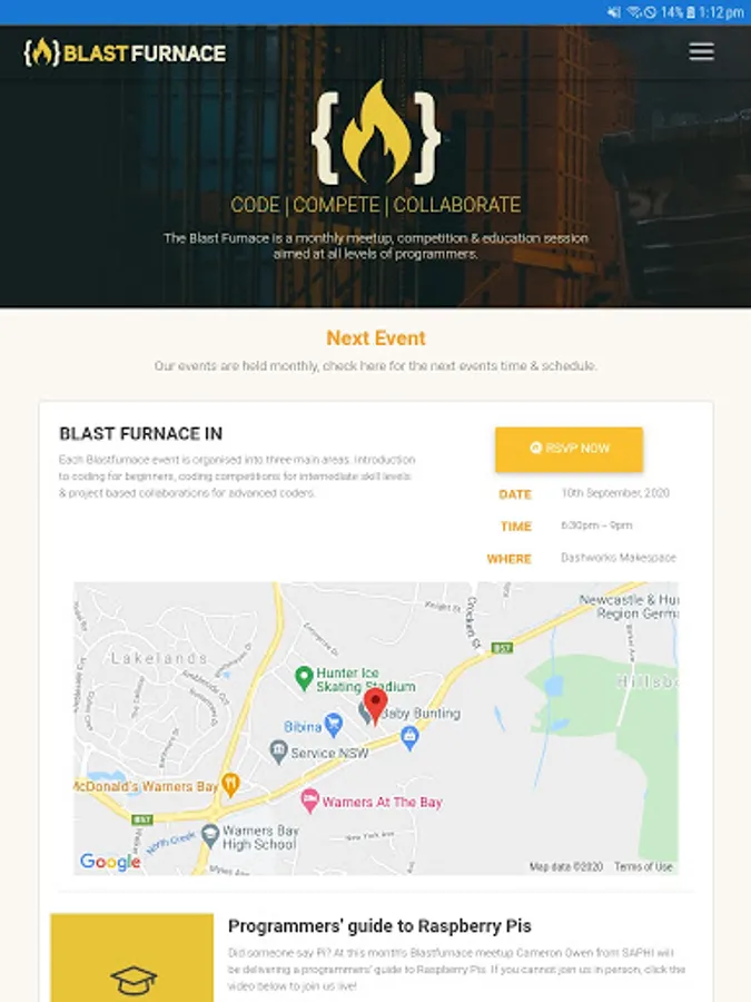 Each Blastfurnace event is organized into three main areas. Introduction to coding for beginners, coding competitions for intermediate skill levels & project-based collaborations for advanced coders.
