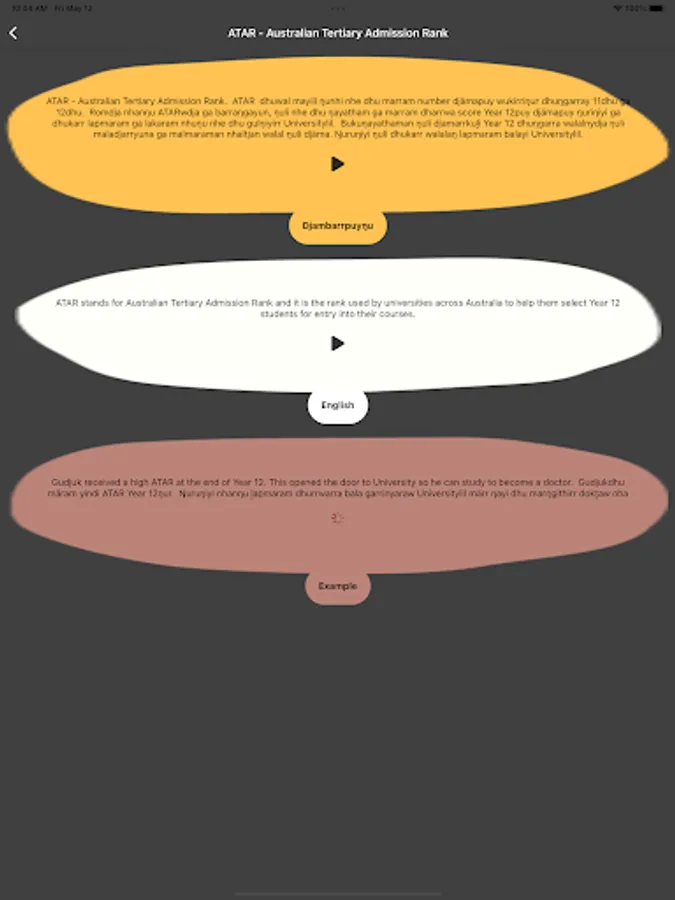 These resources were co-created through a collaborative research project in the remote Yolŋu community of Galiwin’ku. The project - Dharaŋanamirr dhukarr guŋgayunaraw djamarrkuḻiw' ga gurruṯumirriw marŋgikunharaw ḏälkunharaw gakalwun dhiyakun märrmaw'nha romgun - Understanding pathways to support Yolŋu children and families to achieve strong learning in two systems: A Participatory Action Research Project - was funded by an AIATSIS Research Exchange Grant from 2020-23.
