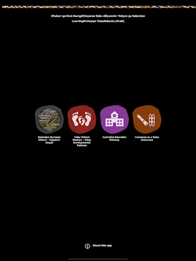 Yolŋu or Yolngu are First Nations Australian people from North-East Arnhem Land in the Northern Territory of Australia; Balanda are non-Indigenous people. The LearningPathways YolŋuBalanda app supports Yolŋu to understand Balanda education systems and Balanda to recognise and respect Yolŋu education systems.