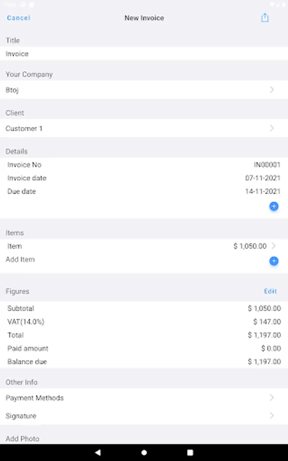 • Tax, GST, VAT set up (e.g. No tax, single tax, compound tax)