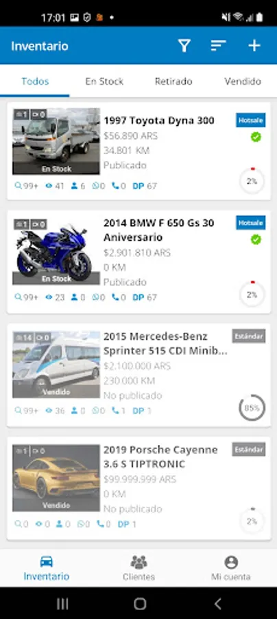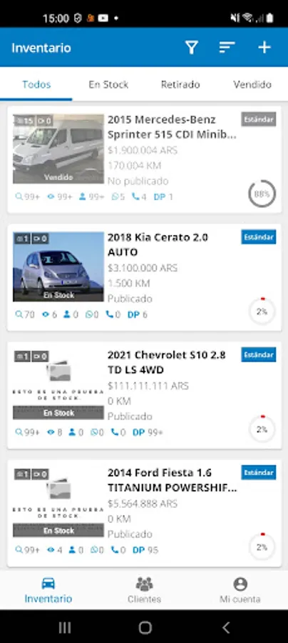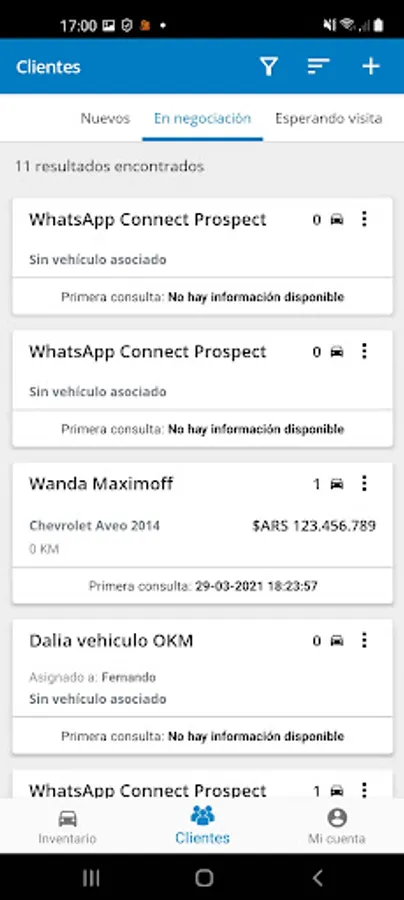 Customers in Chileautos.cl mobile application Control Panel are classified in a dashboard that allows you to visualize in which stage of your sales process each prospect is located to give the correct follow-up during the shopping experience.