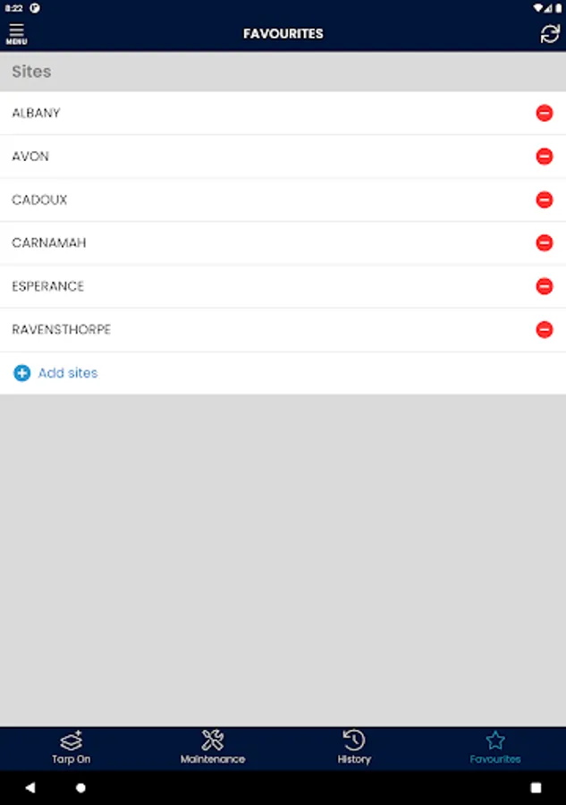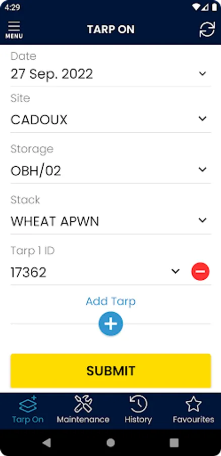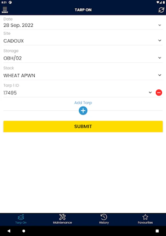 - Set up ‘favourite’ sites to make submitting your tarps easier