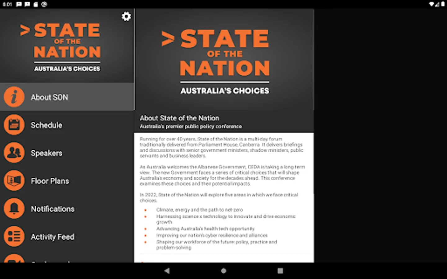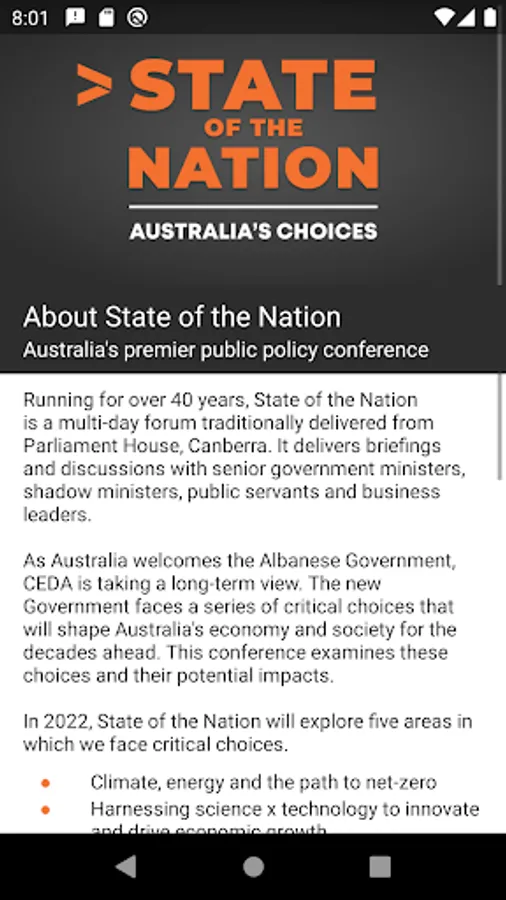 Join leaders, be informed and be part of the discussion at State of the Nation 2022 with the CEDA Event App.