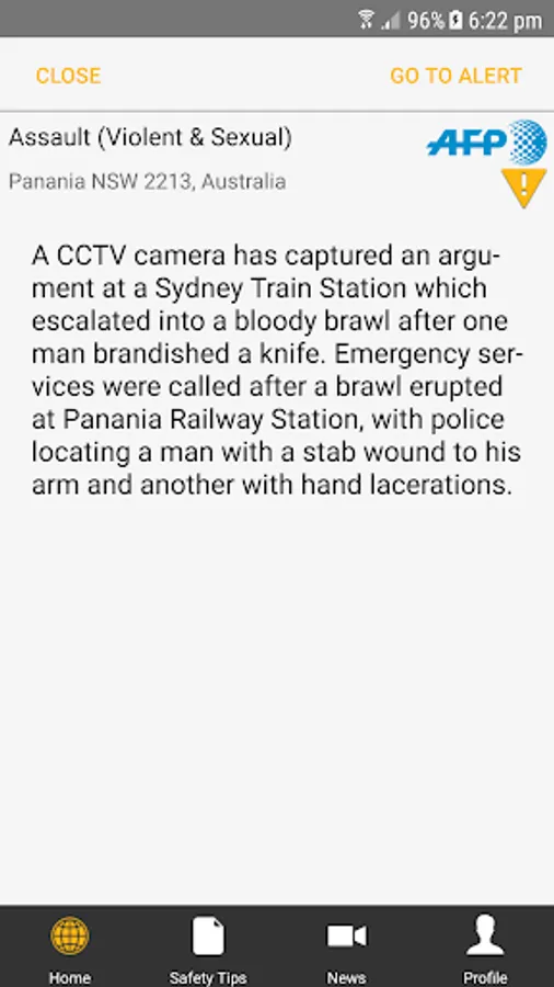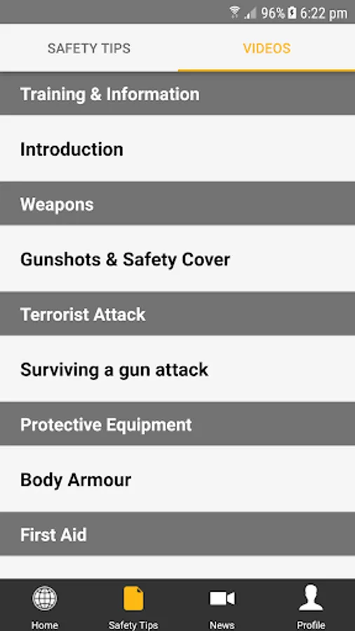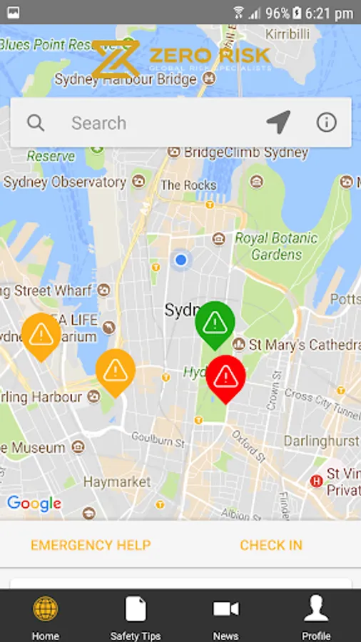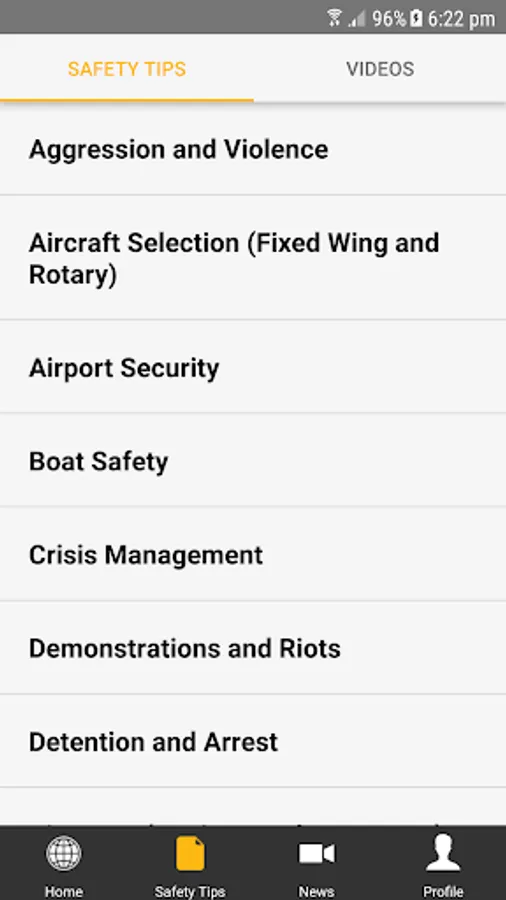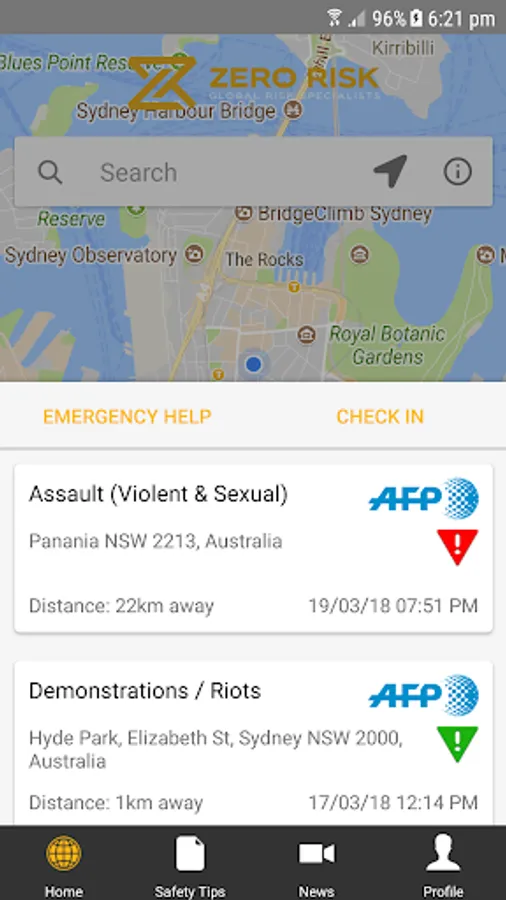 Offers security information, On-line Security & First Aid Training Videos, & Report it function and an International Emergency Contacts list (Embassy’s, Police, Fire, Ambulance, Airport Contacts).