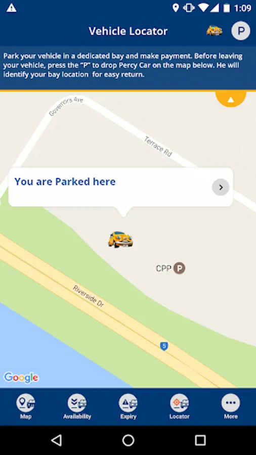 CPParking is suitable for most hand held android devices, and requires GPS for some features. CPParking requires an internet connection for live bay availability.