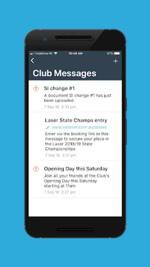 Sailing Official enables officials at Clubs & Classes with a MySailingClub subscription to use their phone to update Messages and Documents displayed in the Sailor app.