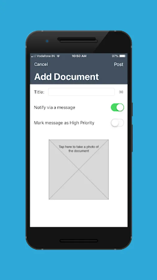 Take a photo of an official message, post it to the Documents menu and send a Message, all with one click.