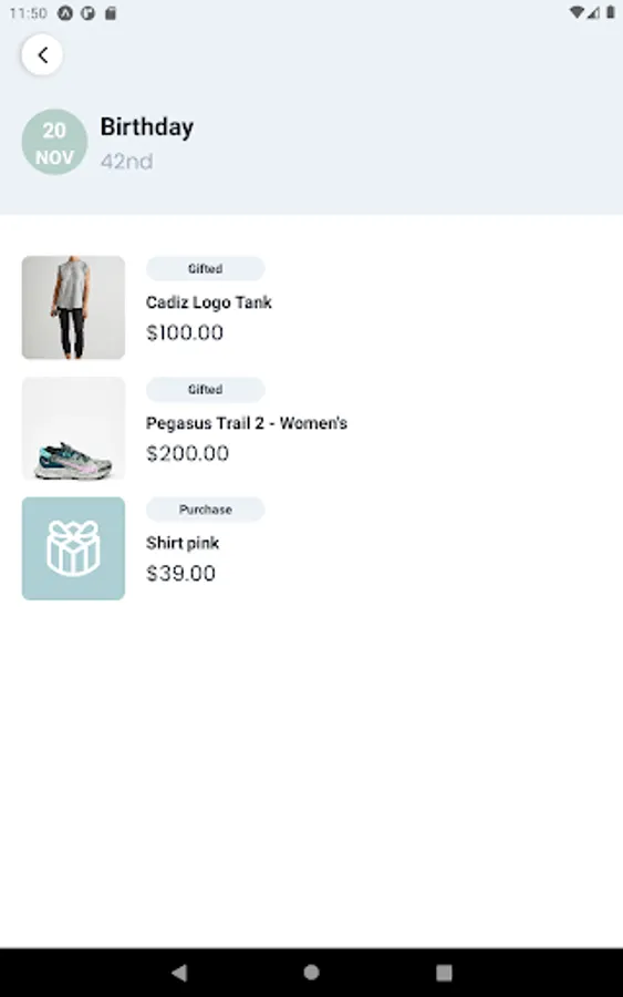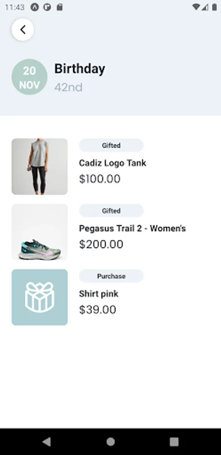 Never miss a friend's birthday again! You will be notified of friends upcoming events such as birthdays and anniversaries and then can simply select from what they would like and order immediately online.