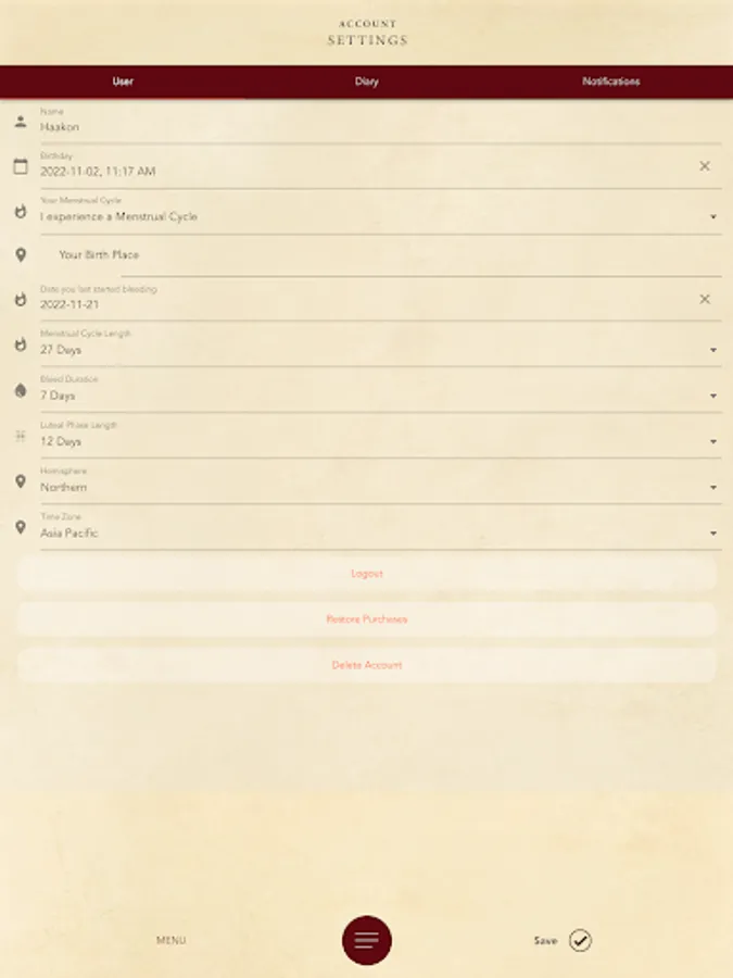 Receive notifications for every dark, new, and full moon, as well as each seasonal sabbat. With an in-app purchase of membership, you can track your menstrual cycle and make journal/diary entries of your daily experiences. Those without a menstrual cycle can track and chart their daily experience according to the moon phase. Along with notifications of the dark, new and full moon phases and seasonal sabbats, you'll receive information about their influence on you, contemplative questions, and a ritual to do to honor and work with the energy. Plus, receive a daily reading of the effects of the energy of your menstrual cycle, the moon phase, the earth season, and your life phase, so you can understand their influences and why you feel the way you do on any particular day.