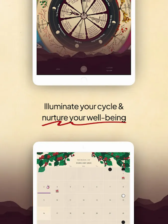 Welcome to Spinning Wheels, the period tracker that aligns with the cycles influencing your daily life. With our app, you'll have: