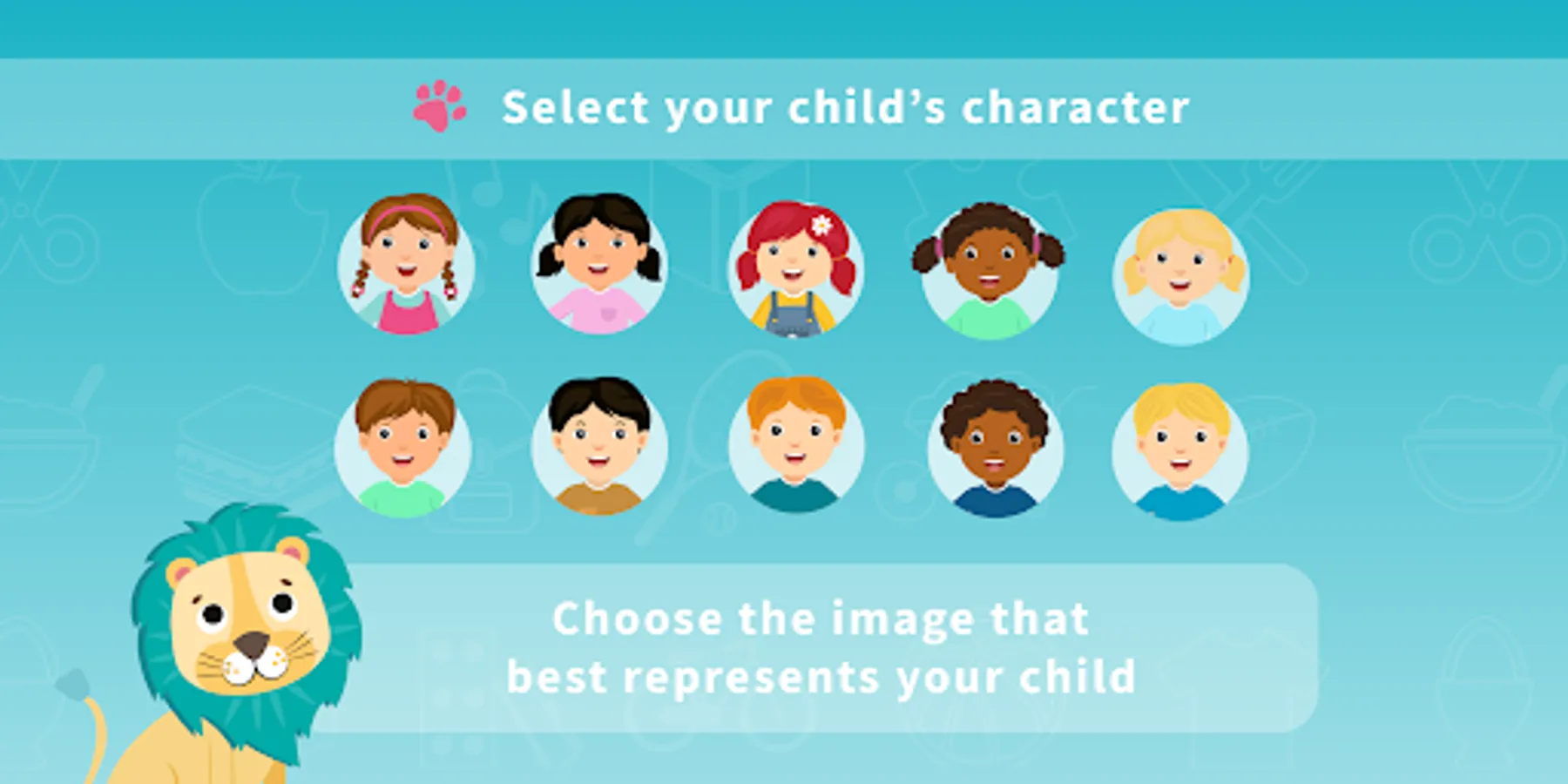 • 10 illustrated child characters to choose from