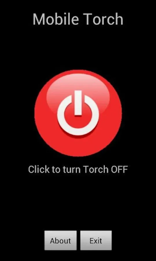Mobile Torch uses your Android device's camera led flashlight (if it has one and is compatible) to emit a bright torch light. Simple, practical, and extremely useful. No more fumbling with keys and keyholes in the dark, etc. Just click on the large on/off button to turn the light on/off. Simple. A good place to access this app would be from your Home screen as it may soon become one of your 'go to' apps. Enjoy!