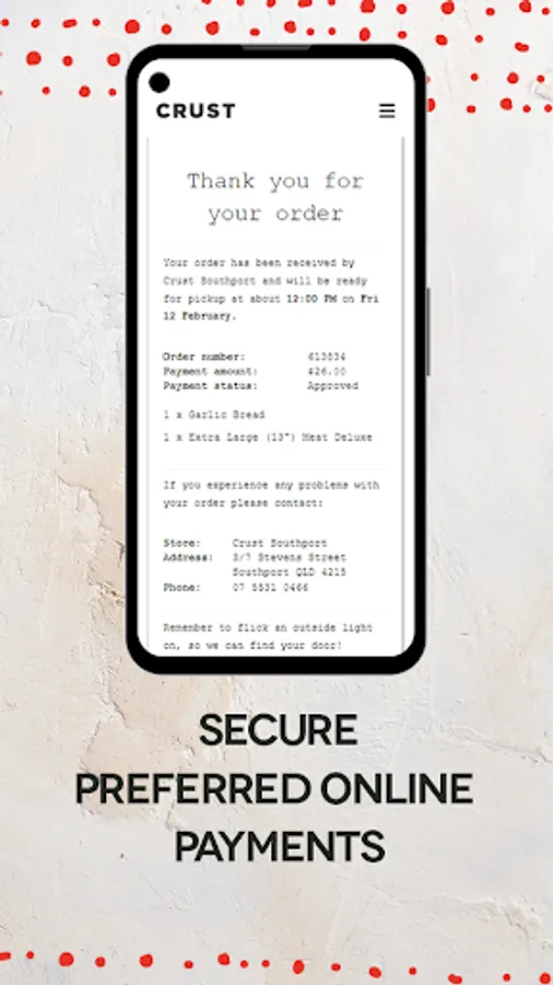 The Crust app offers a range of loyalty rewards with our new Crust Lovers loyalty rewards. Already a loyalty member? Or want to sign-up? Make your phone the place to order pizza; Buy 9, Get 1 Free Large Pizza – Be rewarded for loving our Pizza! Maybe even receive a surprise along the way!