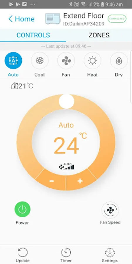 Standard functions such as On/Off, temperature, fan speed and mode of operation are easily set or monitored via the App.