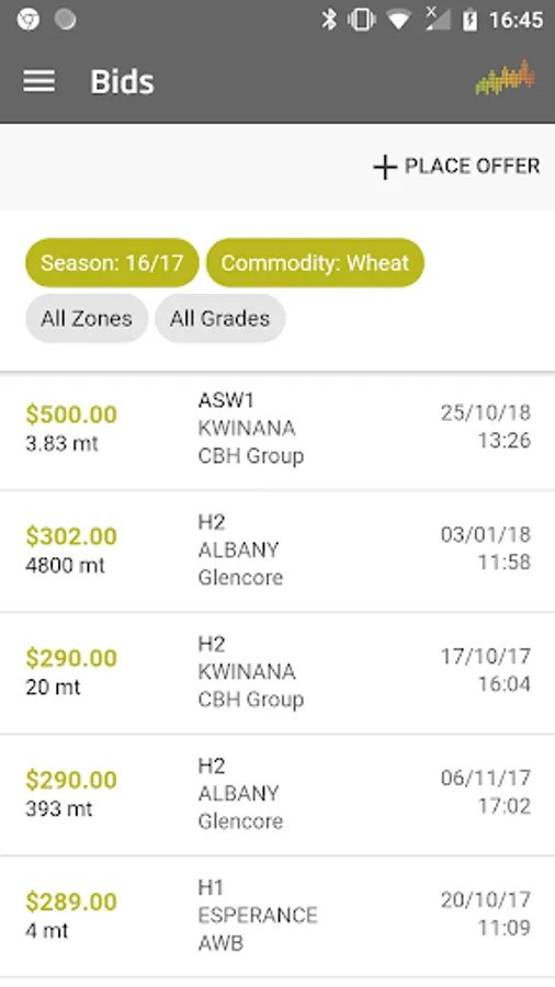 Our new mobile app allows instant access to the latest Offers, Bids, Trades as well as your own trading activity. You can quickly create new Bids or Offers with a few simple clicks. To find out more about how to sign up to DailyGrain go to www.dailygrain.com.au or call the DailyGrain office on (08) 9416 6244.