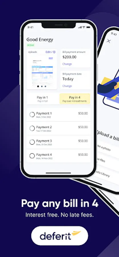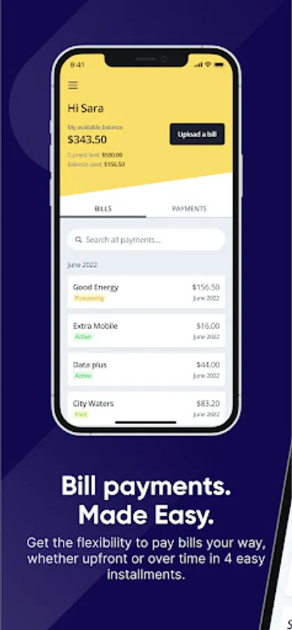 Budget and pay any bill with no interest or late fees. Simply upload a bill, choose how much to pay, and we pay it for you. You pay over time in 4 simple installments!