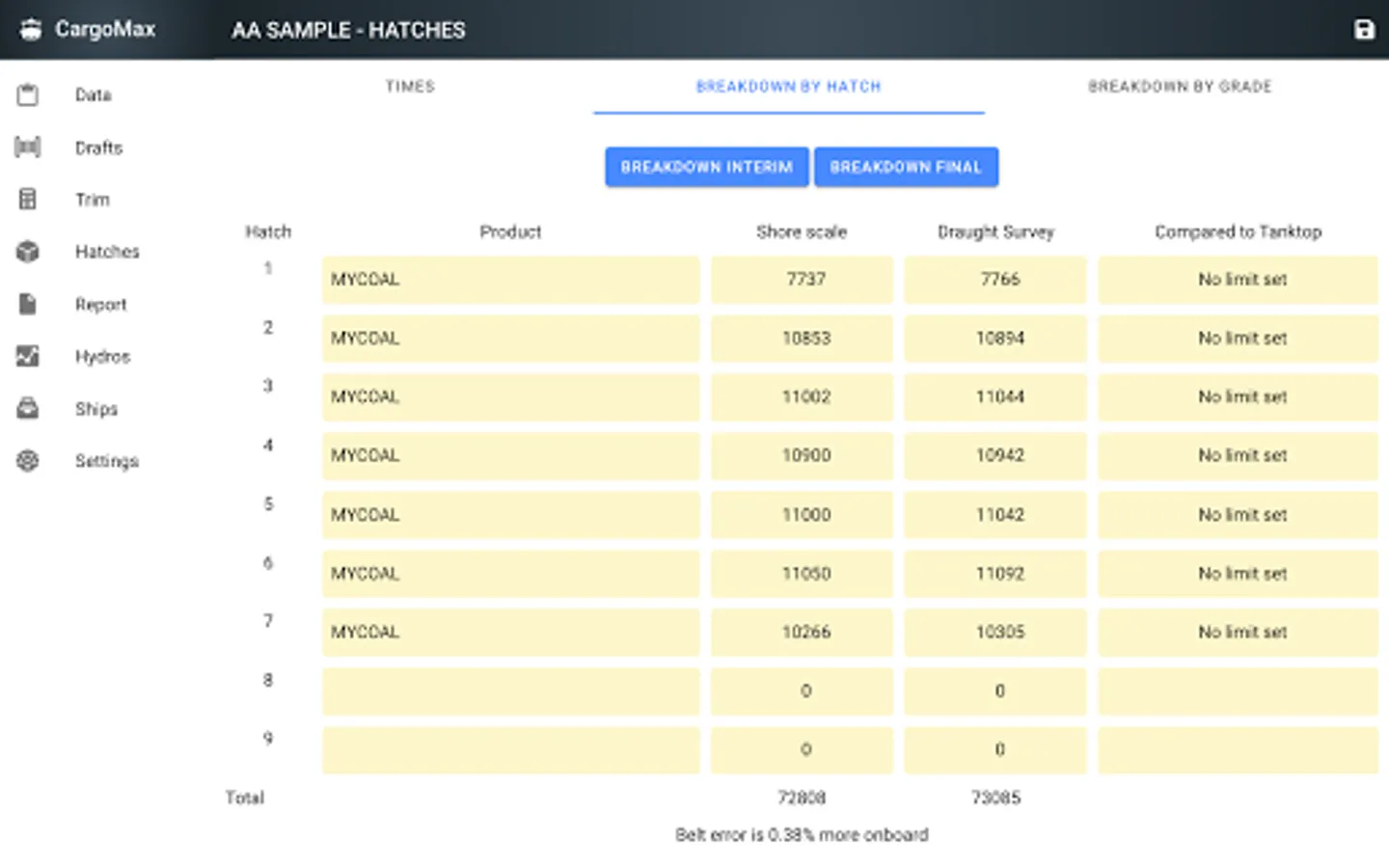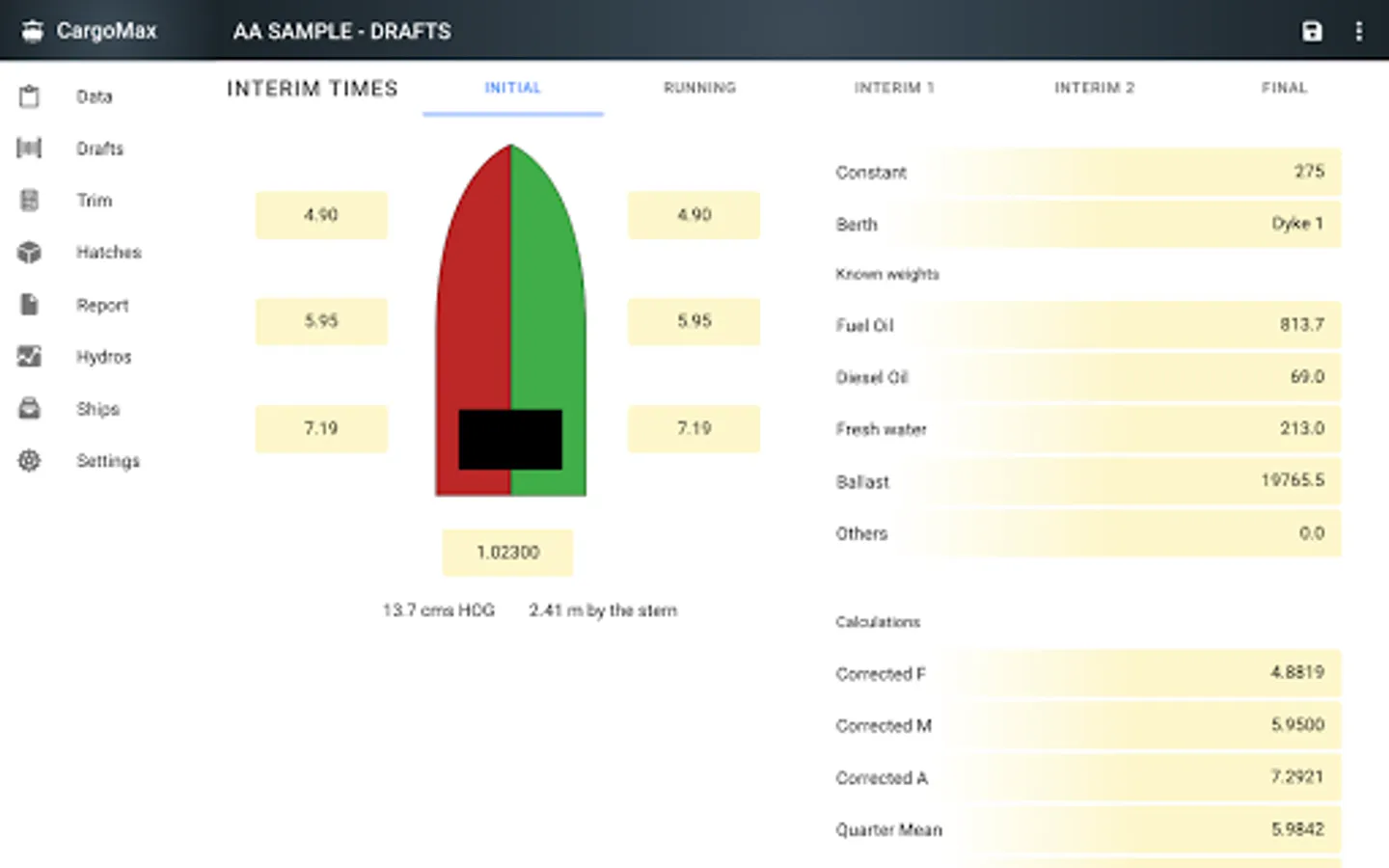 CargoMax software products have been developed by Louis Koutelas – Master Mariner and CEO of Hunter Marine Surveyors based in Newcastle, Australia. With over 35 years seagoing and surveying experience Louis understands the pressures and difficulties associated with performing draft surveys and trimming calculations. CargoMax software products provide a fast, easy and reliable solution for students, seafarers and surveyors. It has a very intuitive layout providing fast and accurate result. Print reports directly from your device to wifi printers or generate pdf reports.