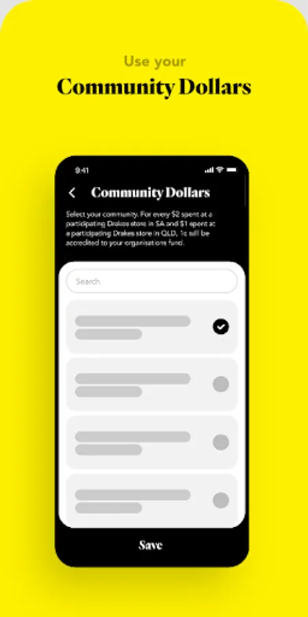Select your participating not-for-profit organisation and for every $2 spent at a participating Drakes store in SA and $1 spent at a participating Drakes store in QLD, 1c will be accredited to your organisations fund.
