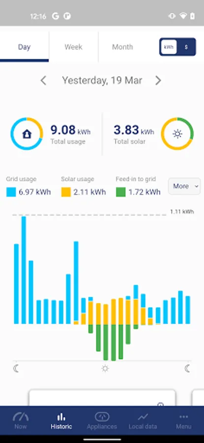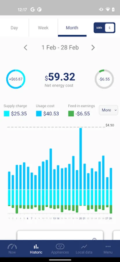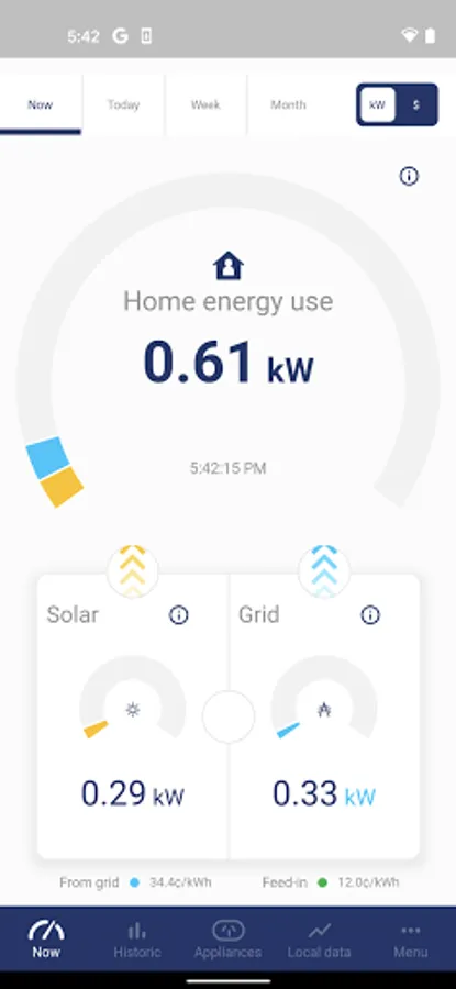 View live and historic trends of whole-of-house or individual appliance energy consumption in our free mobile app, no subscriptions required.