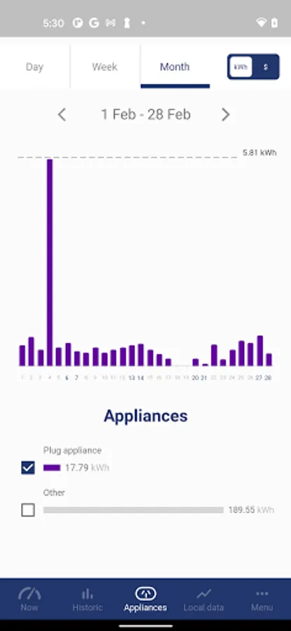 See which appliances consume the most energy. Use data to determine if an old, inefficient appliance should be replaced.