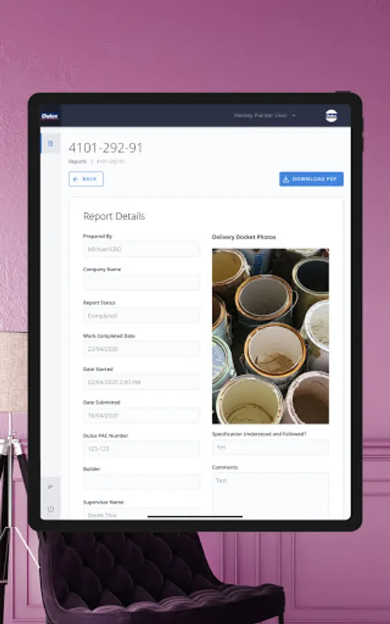 Allowing professional painting contractors better connect with their customers by providing real time reports on job completion and application workflow.