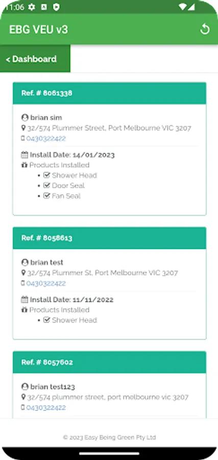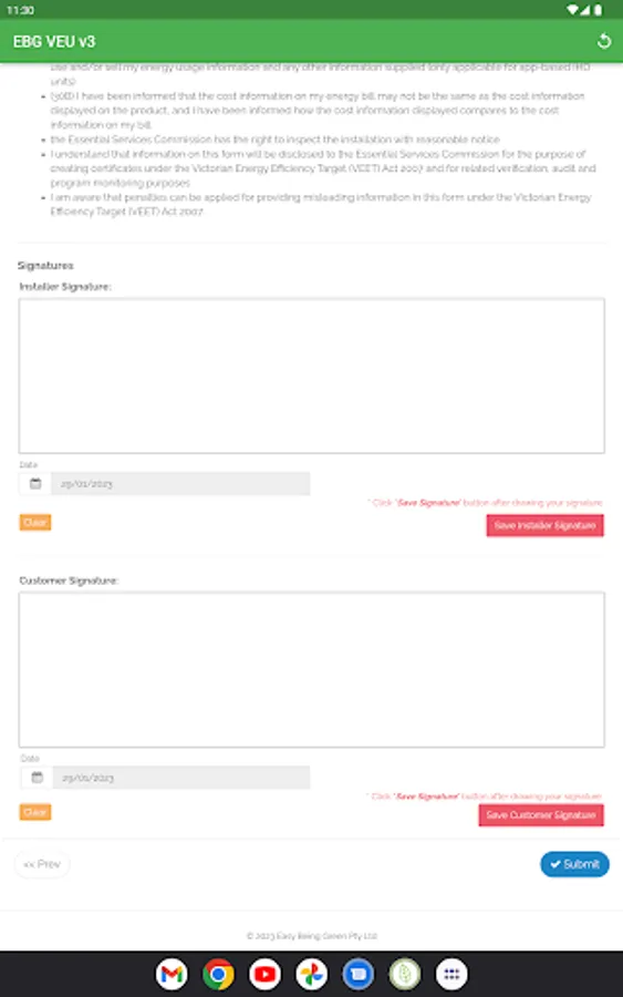 VEU submission App for reps and installers submitting to Easy Being Green's CRM.