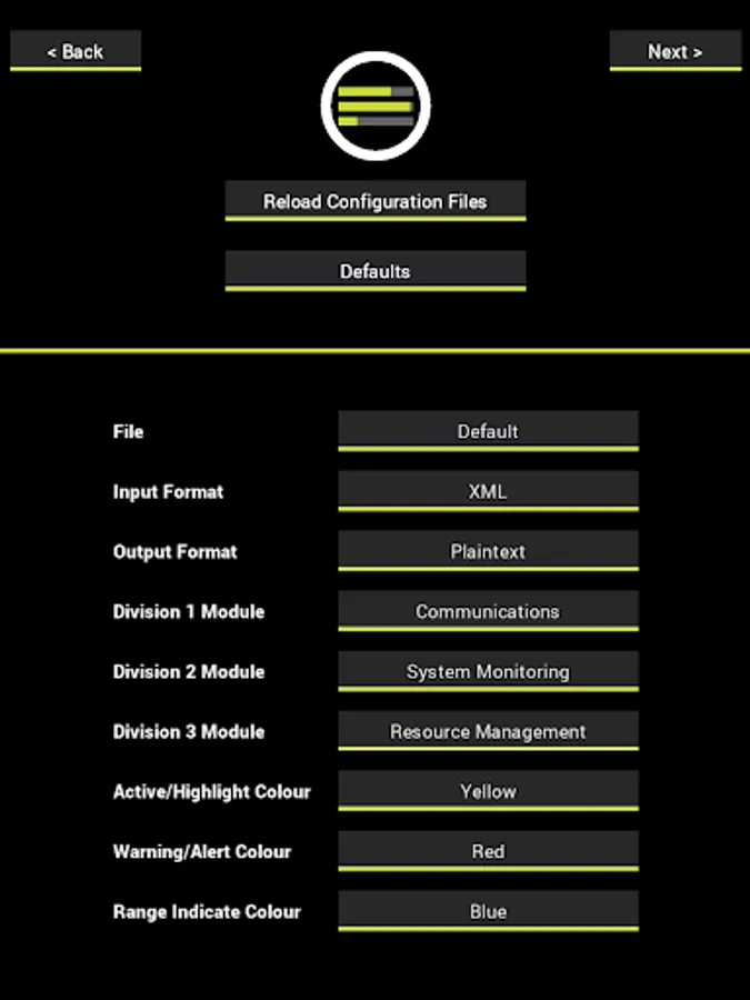 Configuration files for Cedar OWAT can be written in the modern, easy to read and compose JSON format. Cedar OWAT is compatible with the NASA MATB-II XML configuration format making it possible to use the same configuration files for both NASA MATB-II and Cedar OWAT.