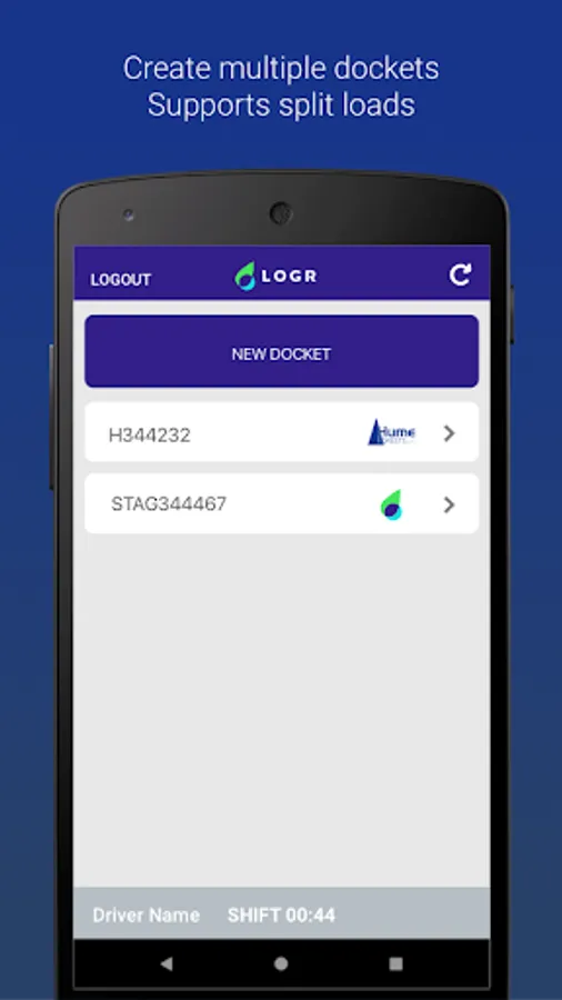 After logging into the app, drivers can create new dockets by selecting from pre-populated lists of locations (compartments and destinations), operation types, and wood types.